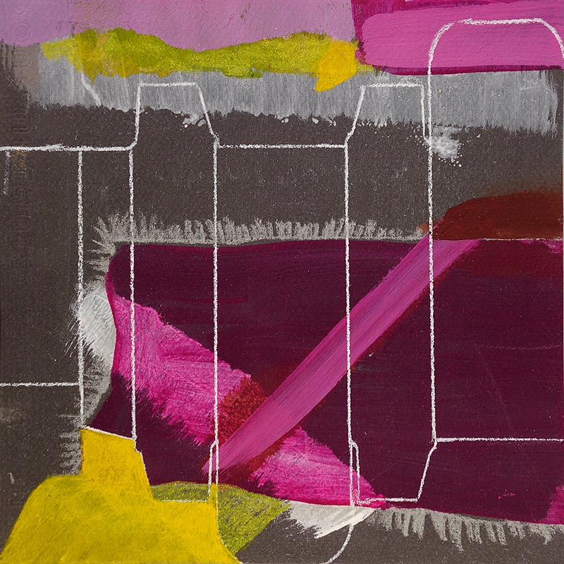 20x20cm, mixed media on canson, random mark abstract incorporating packaging tracing, made for 20×20 at gallery139