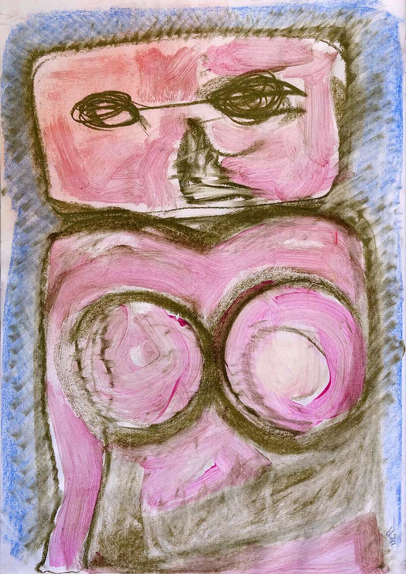 60x42cm, conte on paper, composition influenced by Outsider art, A2 110gsm Jasart sketchbook