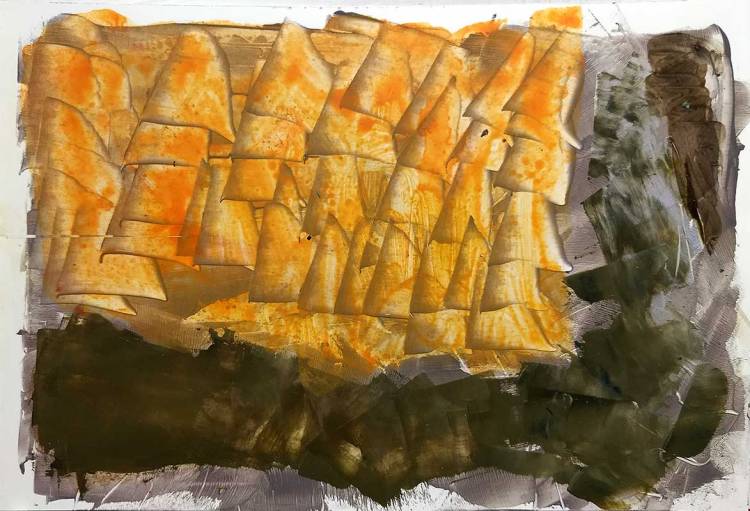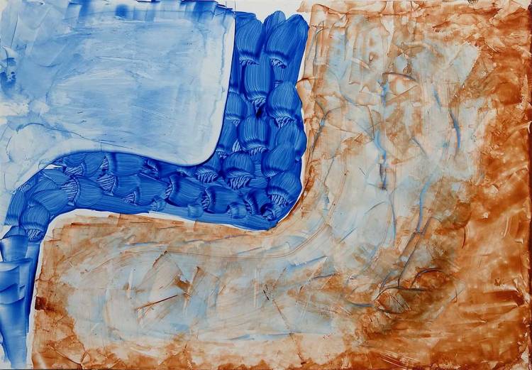 While by-product and chance continue to be important processes in my art practice they are vehicles to extend my research into abstract art. Studying art and living in Sydney both continue to influence my work, providing new starting points for abstract images, many paintings on this page had their beginning as by-products in Master of Art subjects. Recently I found and experimented with Yupo Paper, its plastic texture creates a different (novelty) type of surface for mark making.