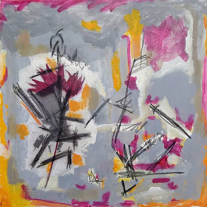Abstract painting continues as my main art research. I am developing a growing interest for and an understanding of minimalist aesthetics and non-objective processes and this in increasingly influencing my artworks. This group of 60x60cm paintings on canvas continue the series I started in 2018. They are painted on canvas that has been stretched over 10mm plywood boards, this gives a hard surface and the size is easy to spin around on my easel in the small studio.