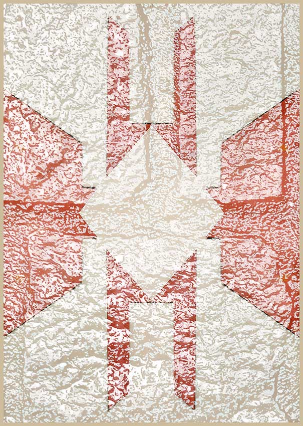 Shapes originating from the recent L-plate painting, these shapes are duplicated flipped and rotated using Photoshop then a second street photo is layered on top and a filter is applied