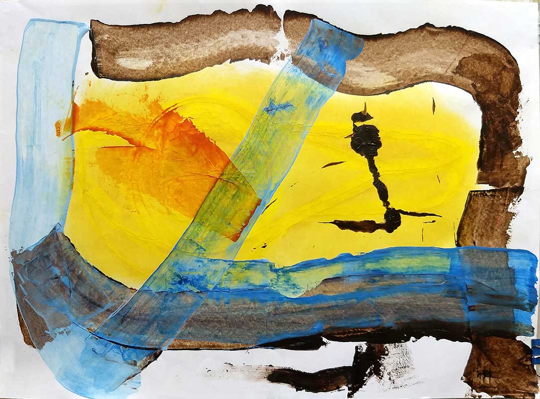 random mark abstract by-product using left over paint from transparency assignment