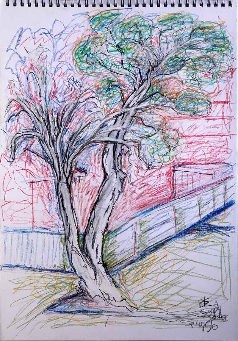 Previous Image Next Image Across the Road-Mudjimba Boundary, 60x42cm, pencil on paper ©Schwab2016 view from our upstairs bedroom at Mudjimba, A2 150gsm Montmarte sketchbook