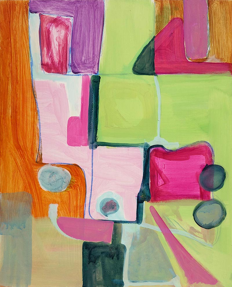 60x48cm, acrylic on 3mm mdf, random mark abstract using new palette, has subconscious elements of Hawkesbury landscapes