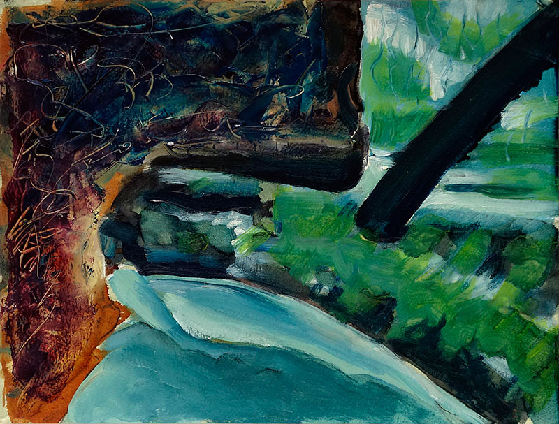 24x32cm, oil on paper, painted from photo taken while sheltering from the rain on walk at BoxHead, oil on gesso 200gsm Canson watercolour paper