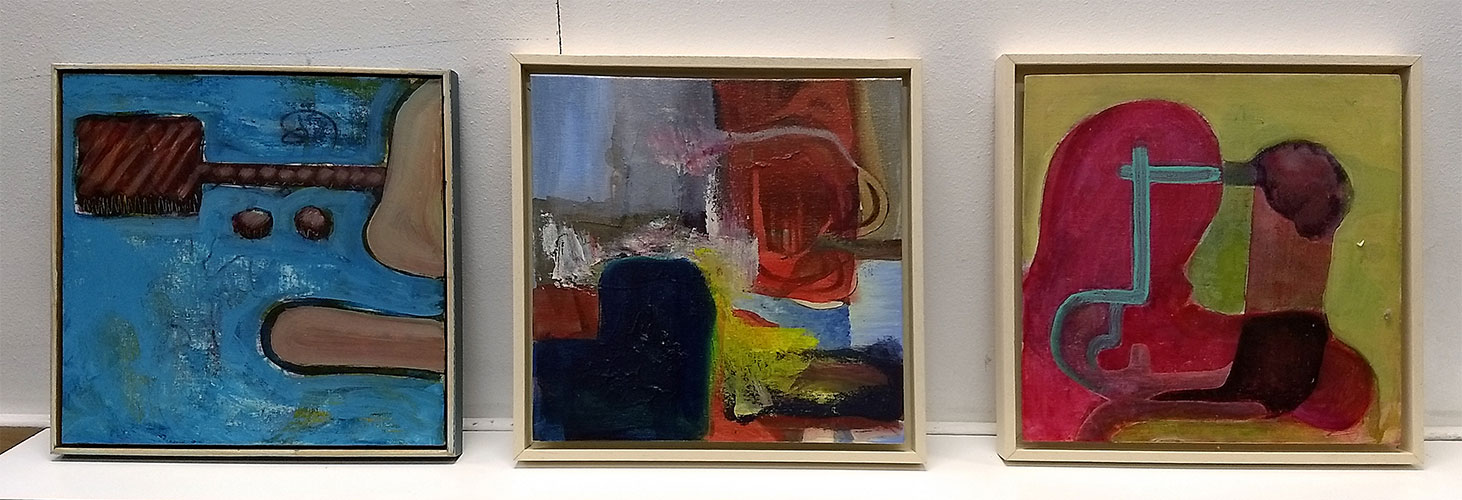 paintings from March Disorder Exhibition, photographed at my studio before. Of the 29-30x30s (some from 2015) only 19 were hung, also hung were 9 larger canvas and boards and 5 A1 digital images.