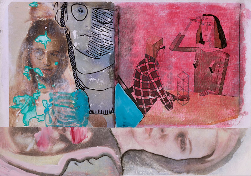 image transfer and acrylic paint (perplexed), 30x42cm, image transfer and acrylic on 300gsm paper