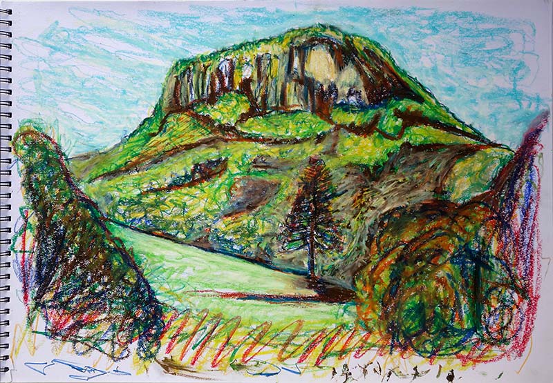2016 plein air drawing with oil pastels on sketchbook,