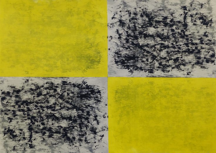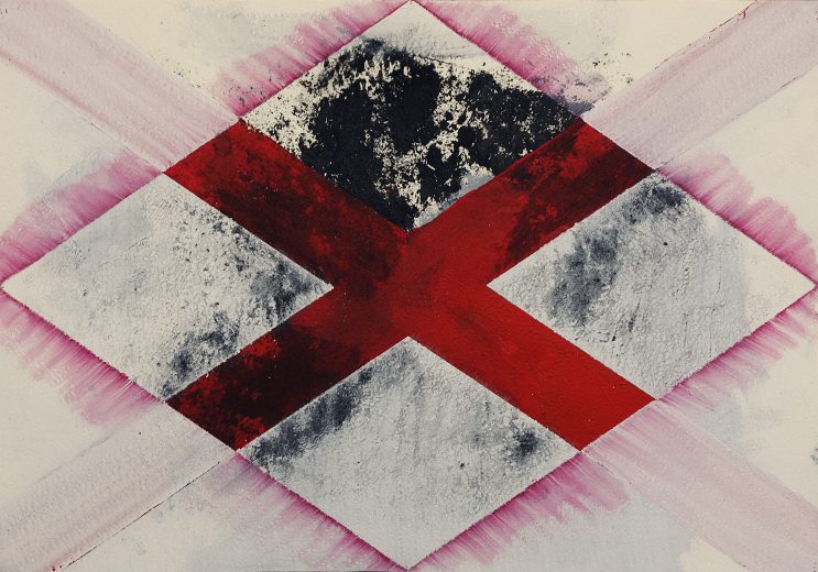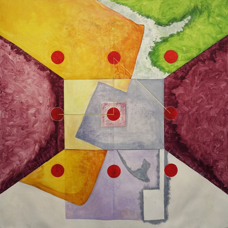 I spent six weeks with three other artists at BigCi in the Blue Mountains. Initially I proposed making art around the local bushfires of summer 2019. To start with the drawings and paintings I made were influenced by the charcoal tree stumps dotted through the adjoining national park. However, over the six weeks my painting processes expanded to include ‘communication’ and nature’s cry for help. To do this my art took on a narrative form around the meanings and shapes of the very specific international communication system of Marine Signal Flags. Given this shift I still managed to stay true to my abstract, non-objective art processes and experimented with larger canvases, 150x150cm