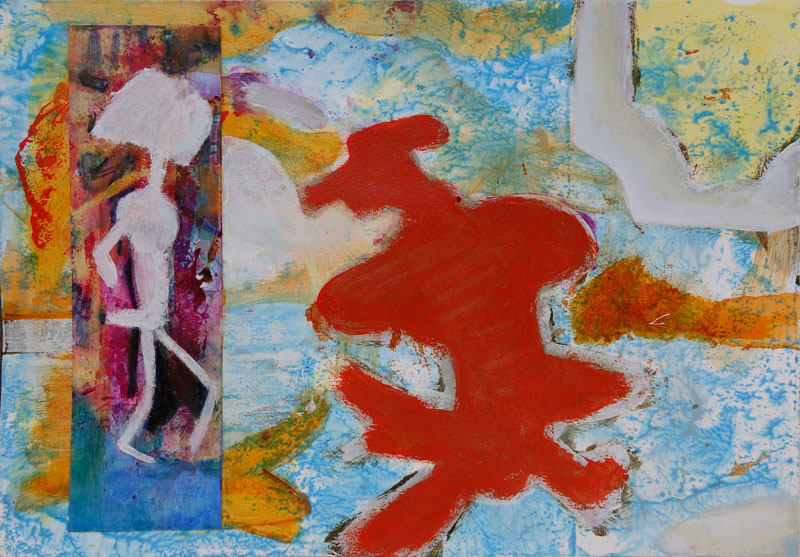 another abstract from random marks, this time figurative?, 30x42cm, acrylic on 300gsm paper