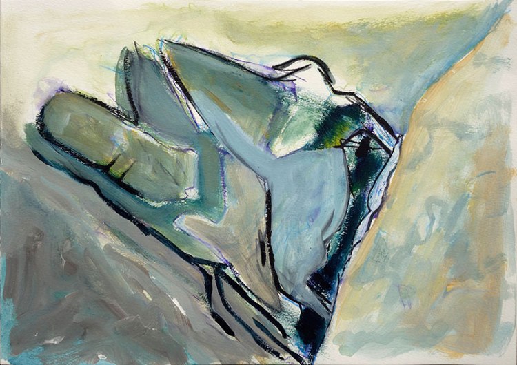 In October I moved into my St Leonards studio and began painting full-time. It felt like I was bringing together my assorted explorations with various processes and materials. Another feature of this year was spending 5 isolated days over Christmas camping at Tia Falls, with its spectacular gorges, waterfalls and rocks, it was a time for relaxing, exploring and drawing.