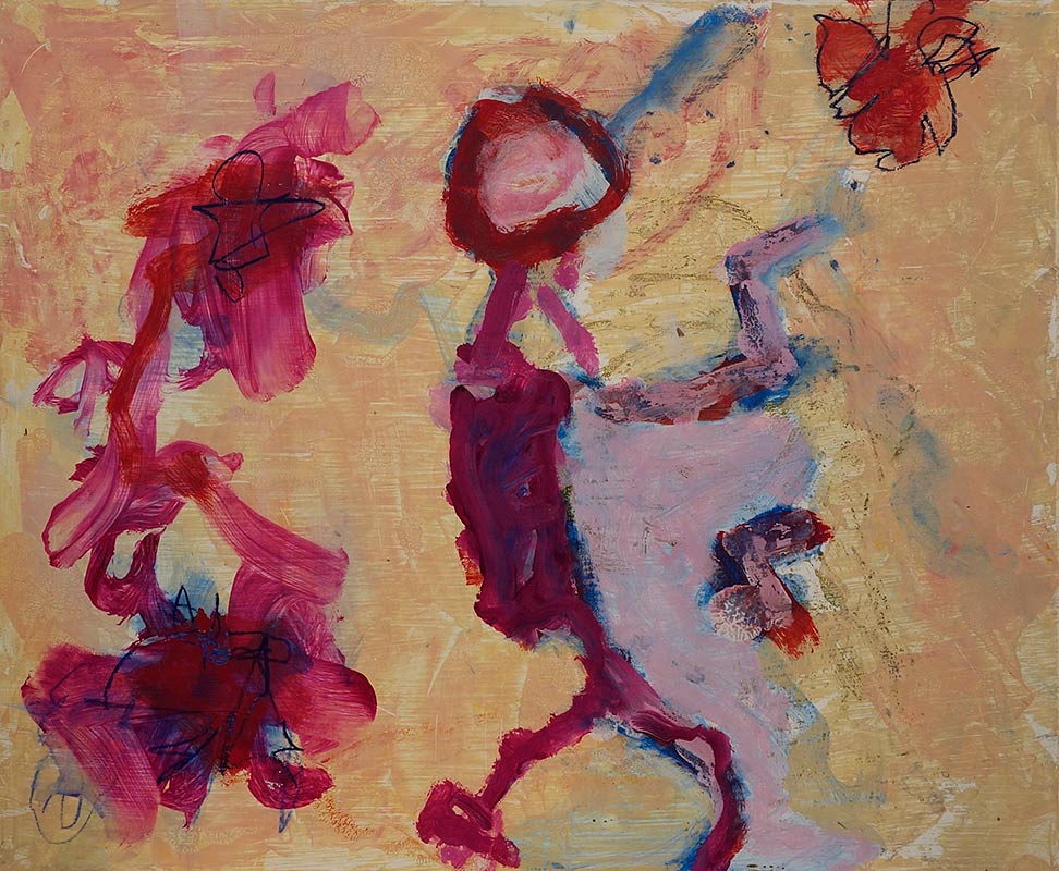 pareidolia allows this to resemble 2 figures, but is an abstract made with no intention