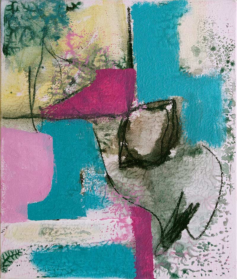 25x30cm or 30x25cm, mixed media on canvas board, abstract from random marks, one from triptych