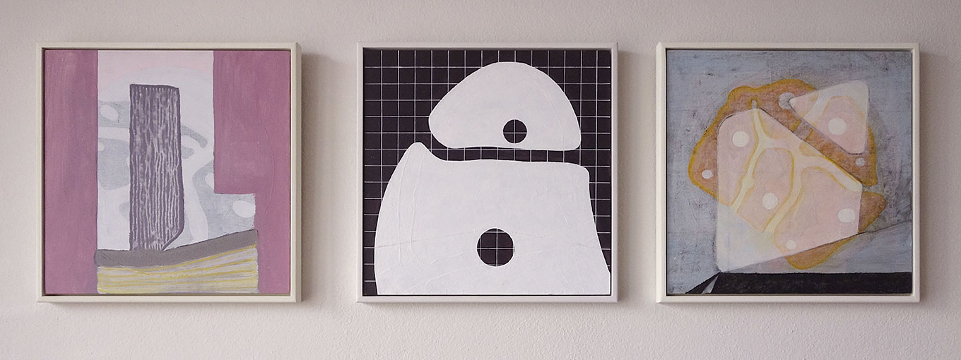 Three oil dots on the wall, 30x30cm acrylic on board and framed 31.5×31.5cm, ©Schwab2021