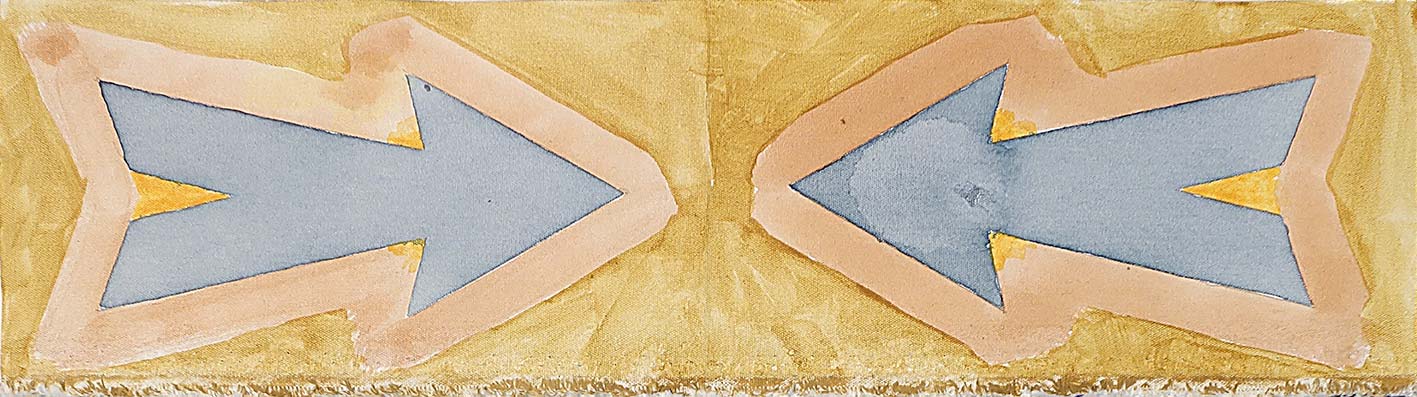 Previous Image Next Image ©Schwab2021 Arrow to Arrow -acrylic on polycotton Arrow to Arrow 50x14cm Painted on a polycotton off-cut, while extending the use of my L-plate cut-outs