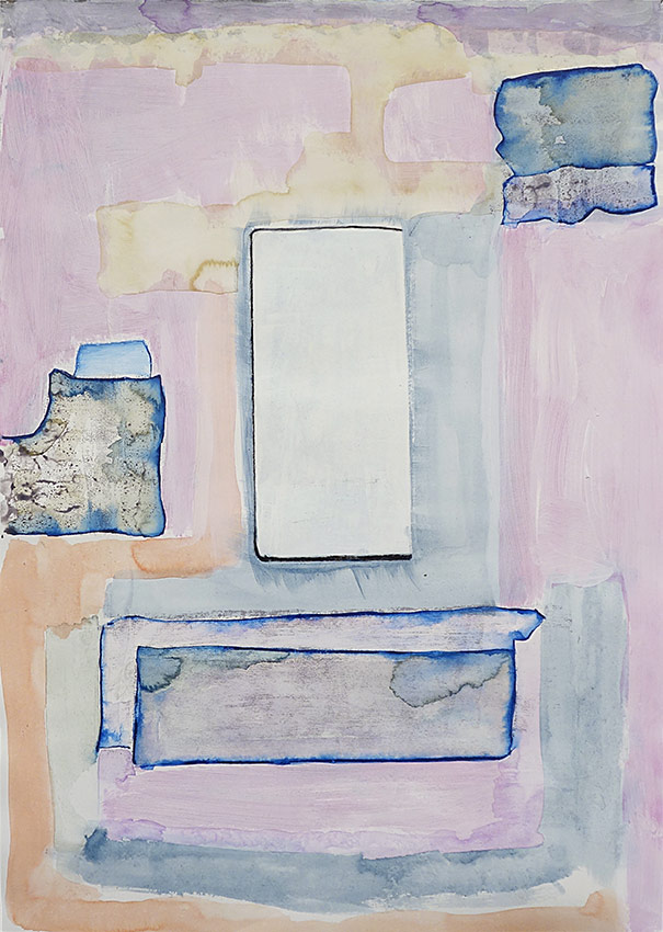 a mixed media non-objective, chance, by-product piece which began when one of the fridge magnets I was painting became an unintentional stencil