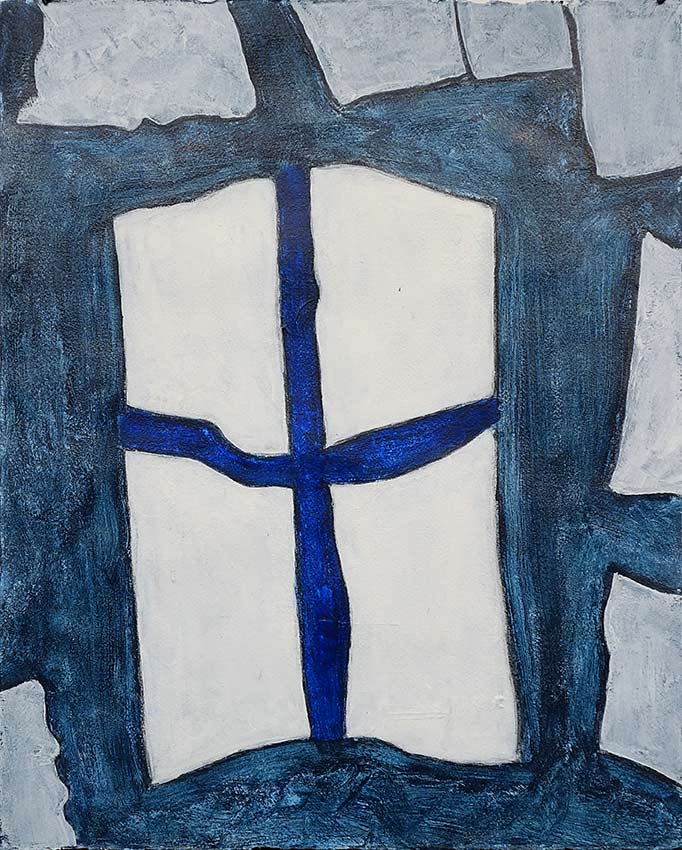 A painting of a torn paper composition, with links to Marine signal Flags