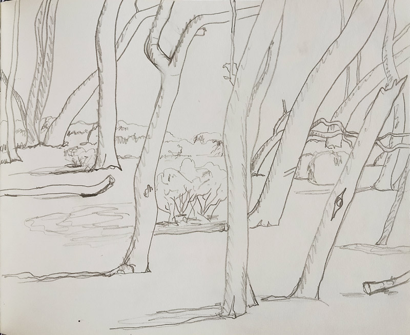 Previous Image Next Image ©Schwab2017 wogwog, sketchbook6 spotted gums, 21x26cm, pencil on 150gsm paper